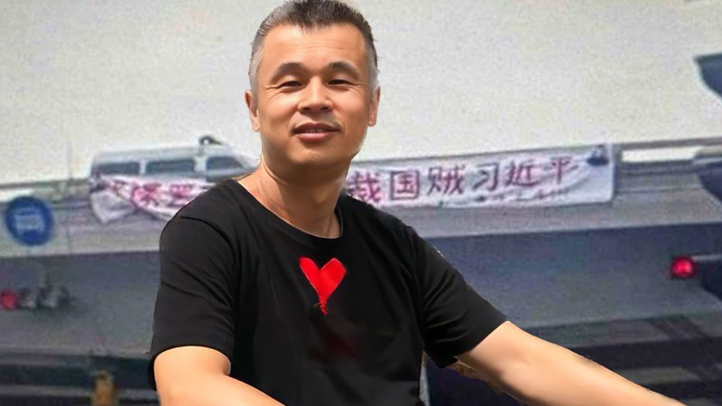 横断幕を掲げ、中共(中国共産党)に単独で立ち向かった「勇士」の名は彭載舟(ほうさいしゅう)氏(本名・彭立發)、彼はその場で取り押さえられ、当局に連行された。