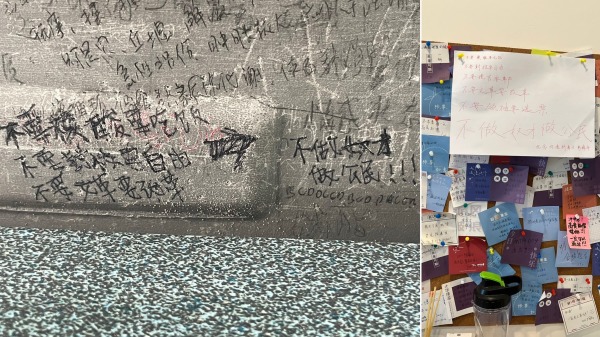 陸橋には「自由が欲しい、民主が欲しい、選挙権が欲しい!」「独裁者習近平を罷免せよ」といった現政権批判の横断幕が掲げられ、そのスローガンを唱える若い男性の声が繰り返し再生されていたが、橋の上には誰もいないのだ。