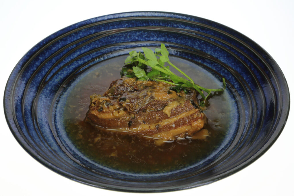 ④ ②の肉に③をかけ、3センチ幅に切った香菜を盛り付けたら、出来上がり。