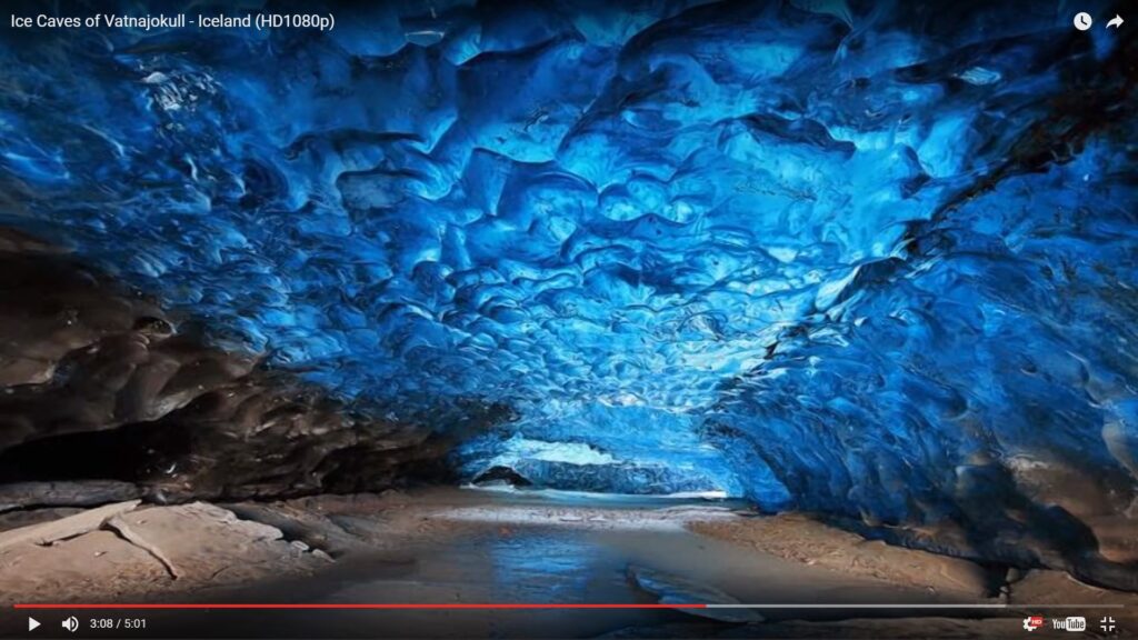 アイスランドのヴァトナヨークトル(Batnajokull)氷河には息を飲む美しい氷の洞窟があります。洞窟の中から見た氷は、滑らかな曲線を描く透明なガラス岩の続きのようです。また、氷の中に殆ど気泡が入っていないため、ほぼすべての可視光が氷に吸収され、肉眼で見える青い光しか残らないので、洞窟の中の氷は青一色になっています。幻想的な氷の洞窟に入ると時間も忘れてしまい、ひたすら青い光に浸りたくなります。