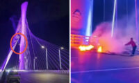近隣住民によると、最近、交通事故が橋付近で発生し、車が欄干にぶつかったことで、橋の内部構造が露出したという。