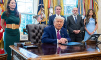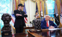 トランプ大統領も公衆に自信満々な姿を見せる。セットに長い時間がかかるであろう独特な髪形は彼の象徴でもある。金色の光沢と流線形が生み出す立体感に比肩するものはないだろう。