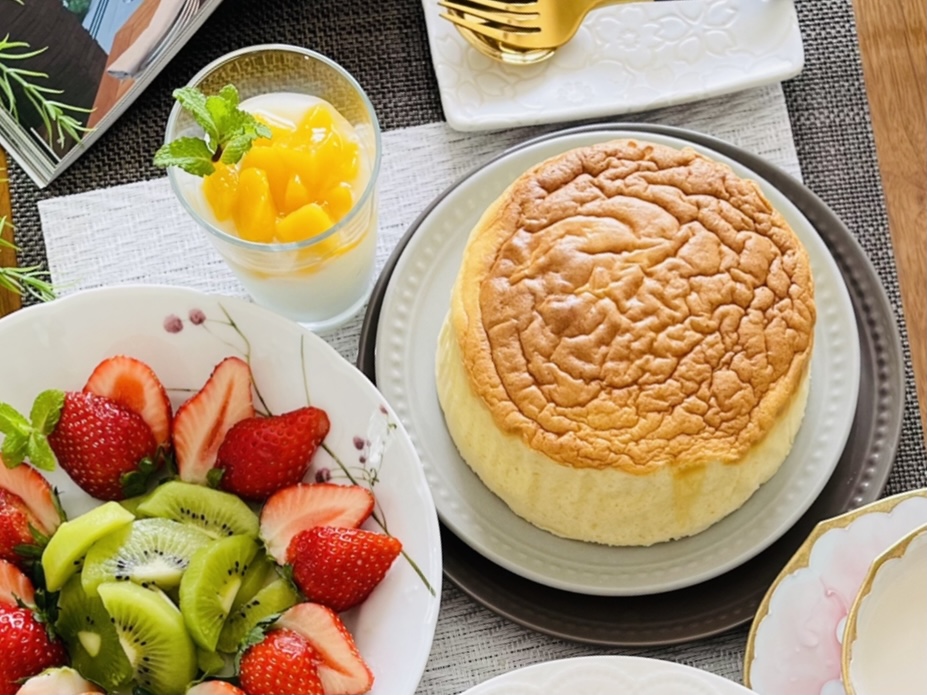 「スフレ」はフランス語で「吹く」という意味があるそうですが、フランス発祥ではなく、日本発祥のチーズケーキで、海外では「Japanese Cheesecake」とも呼ばれています。