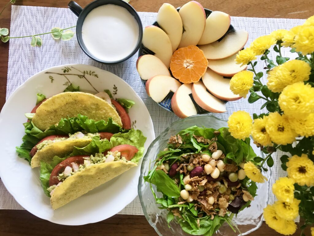 #breakfast #avocado #tacos #crispy #fuits #salad #coffee #朝ごはん #アボカド #タコス #クリスピー #サラダ #フルーツ #コーヒー