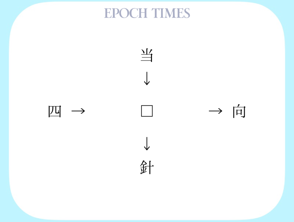 □に入る漢字を考えてください。 適当な漢字を入れることによって、「"当□、□向、四□、□針"」という4つの二字熟語ができます。 □に入る漢字は、熟語によって読み方が違ってもかまいません。