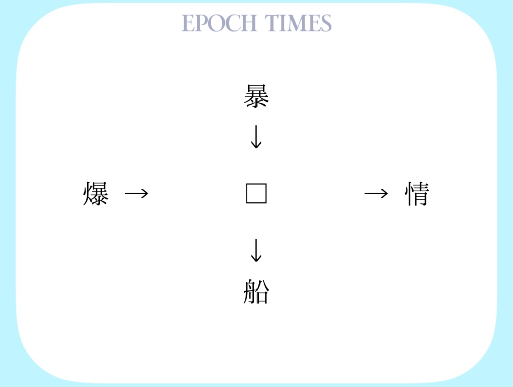 適当な漢字を入れることによって、「"暴□、□情、爆□、□船"」という4つの二字熟語ができます。