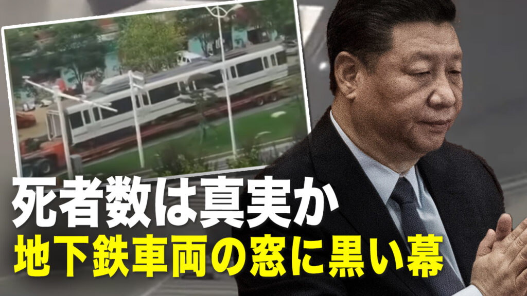 死者数は真実か 地下鉄車両の窓に黒い幕