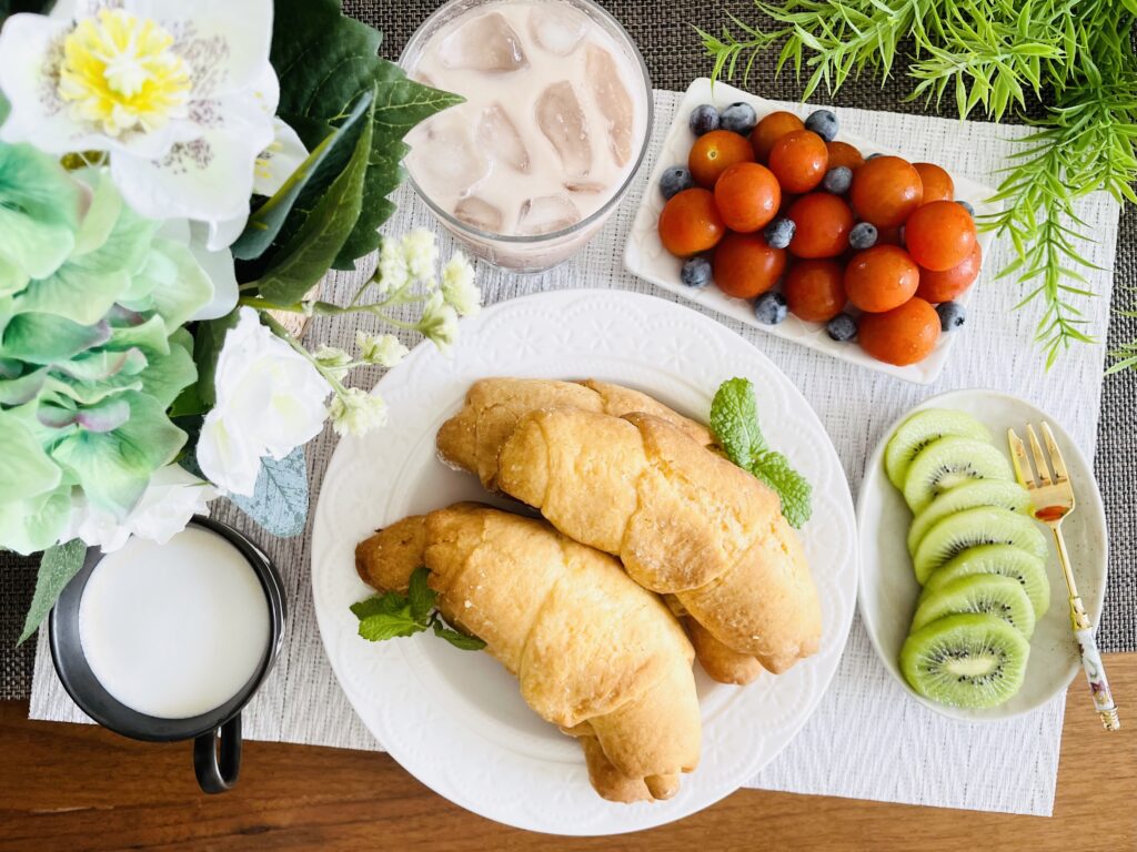 バターロールとクロワッサンの違いは、クロワッサンとは、バターやマーガリンを生地にたっぷりと「折り込み」、三日月形に焼き上げたパンで、何層にも重ねて作られたもので、サクサクとした食感を楽しめます。