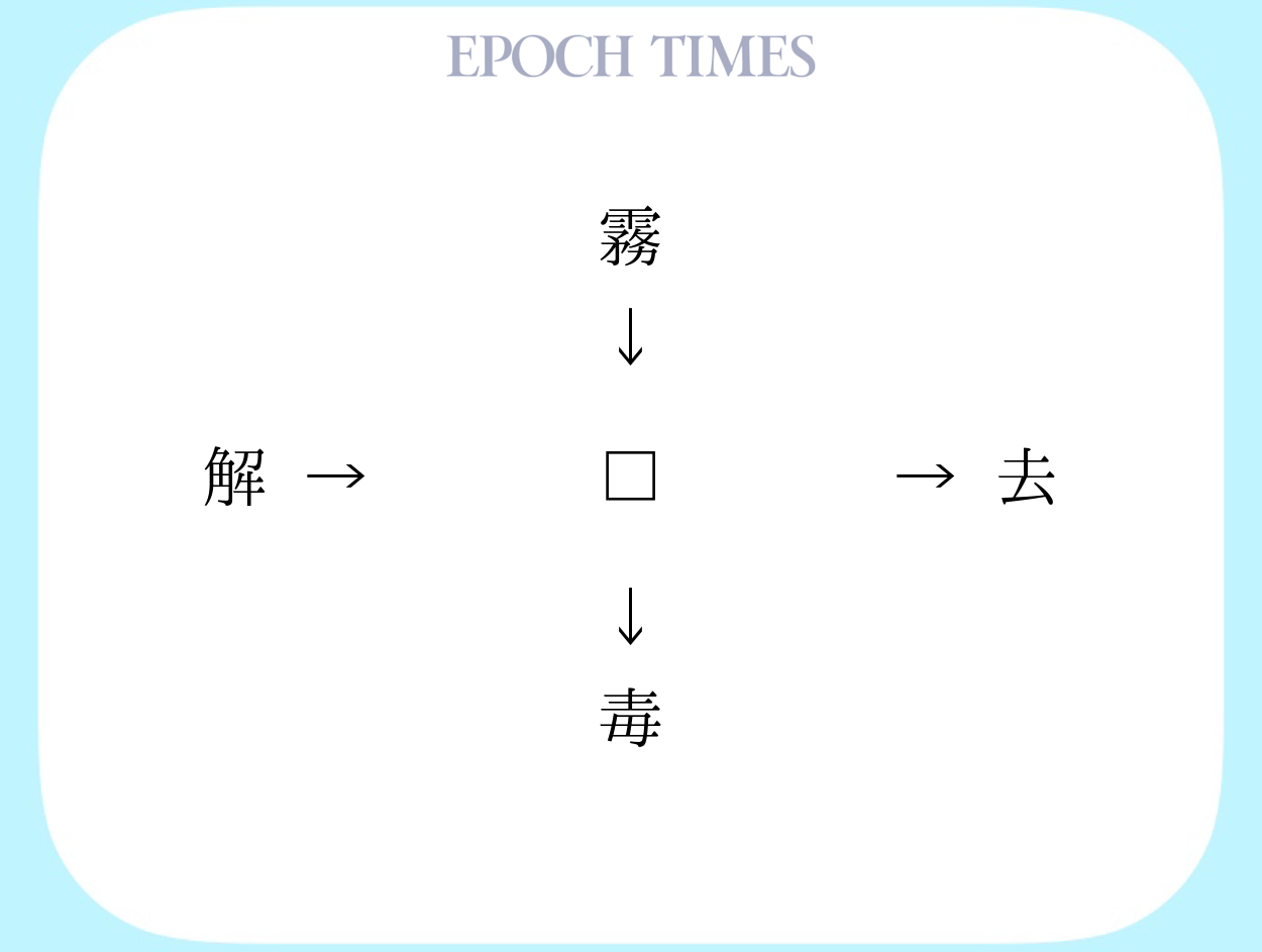□に入る漢字を考えてください。 適当な漢字を入れることによって、「"霧□、□去、解□、□毒"」という4つの二字熟語ができます。 □に入る漢字は、熟語によって読み方が違ってもかまいません。