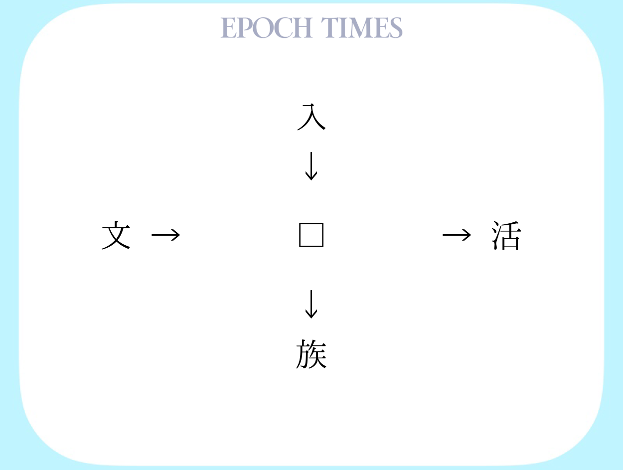 □に入る漢字を考えてください。 適当な漢字を入れることによって、「"入□、□活、文□、□族"」という4つの二字熟語ができます。 □に入る漢字は、熟語によって読み方が違ってもかまいません。