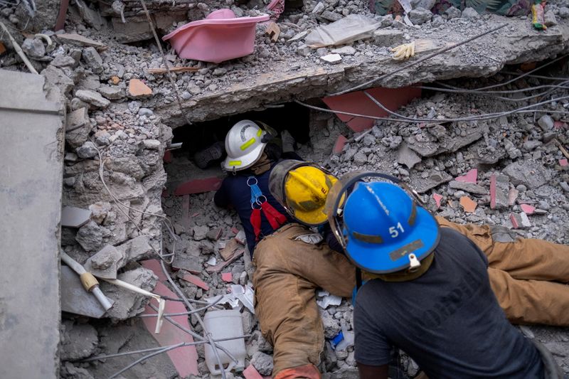 [レカイ(ハイチ) 17日 ロイター] – ハイチで14日に起きたマグニチュード(M)7.2の大地震による死者は、17日時点で1941人に達した。熱帯低気圧が去って救助活動は再開されたが、首都ポルトープランスから現地までの途中、治安が悪化したり、洪水被害に見舞われたりしている地域があるため、人員や物資の輸送に苦戦。被災者からは大幅に不足している食料、避難場所、医薬品の支援を求める声が高まっている。
