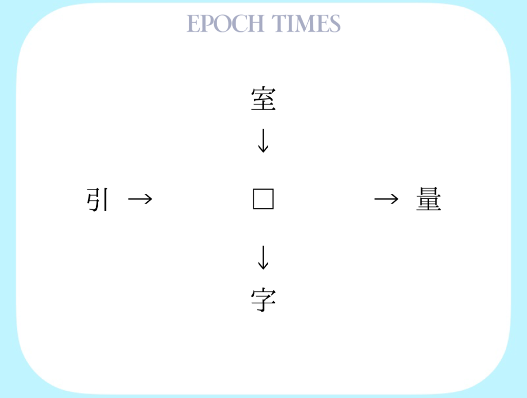 適当な漢字を入れることによって、「"室□、□量、引□、□字"」という4つの二字熟語ができます。