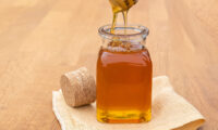 200ccのお湯を鍋に入れ、はちみつ200ccと適量の砂糖を加えて火にかけます。