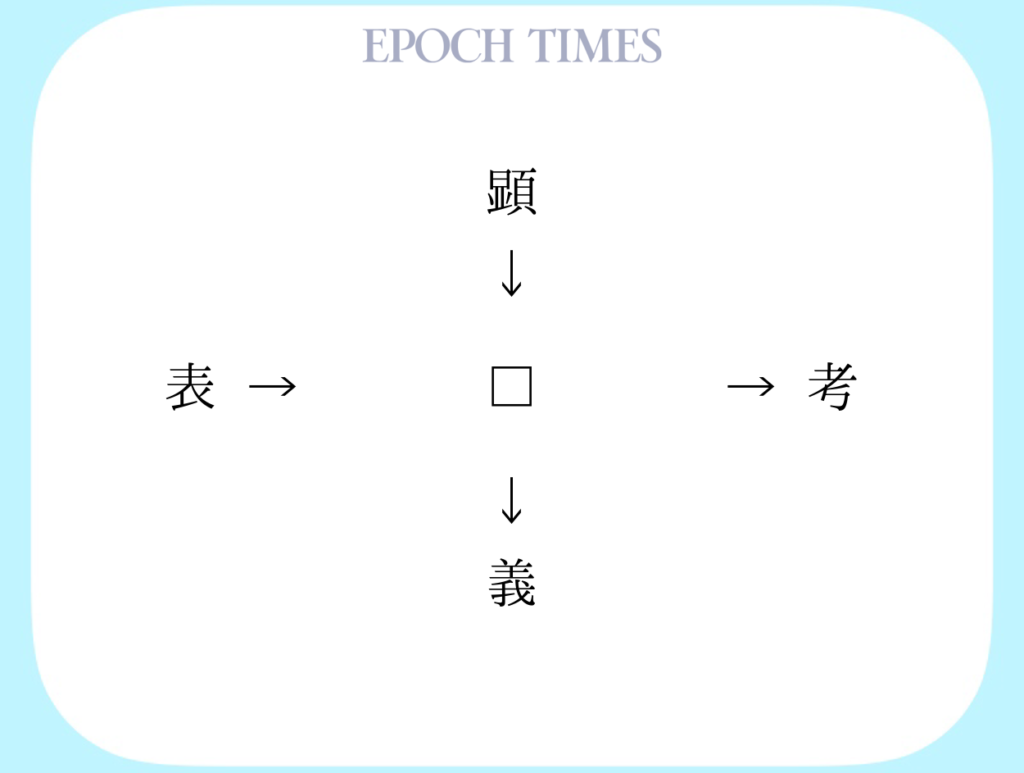 適当な漢字を入れることによって、「"顕□、□考、表□、□義"」という4つの二字熟語ができます。