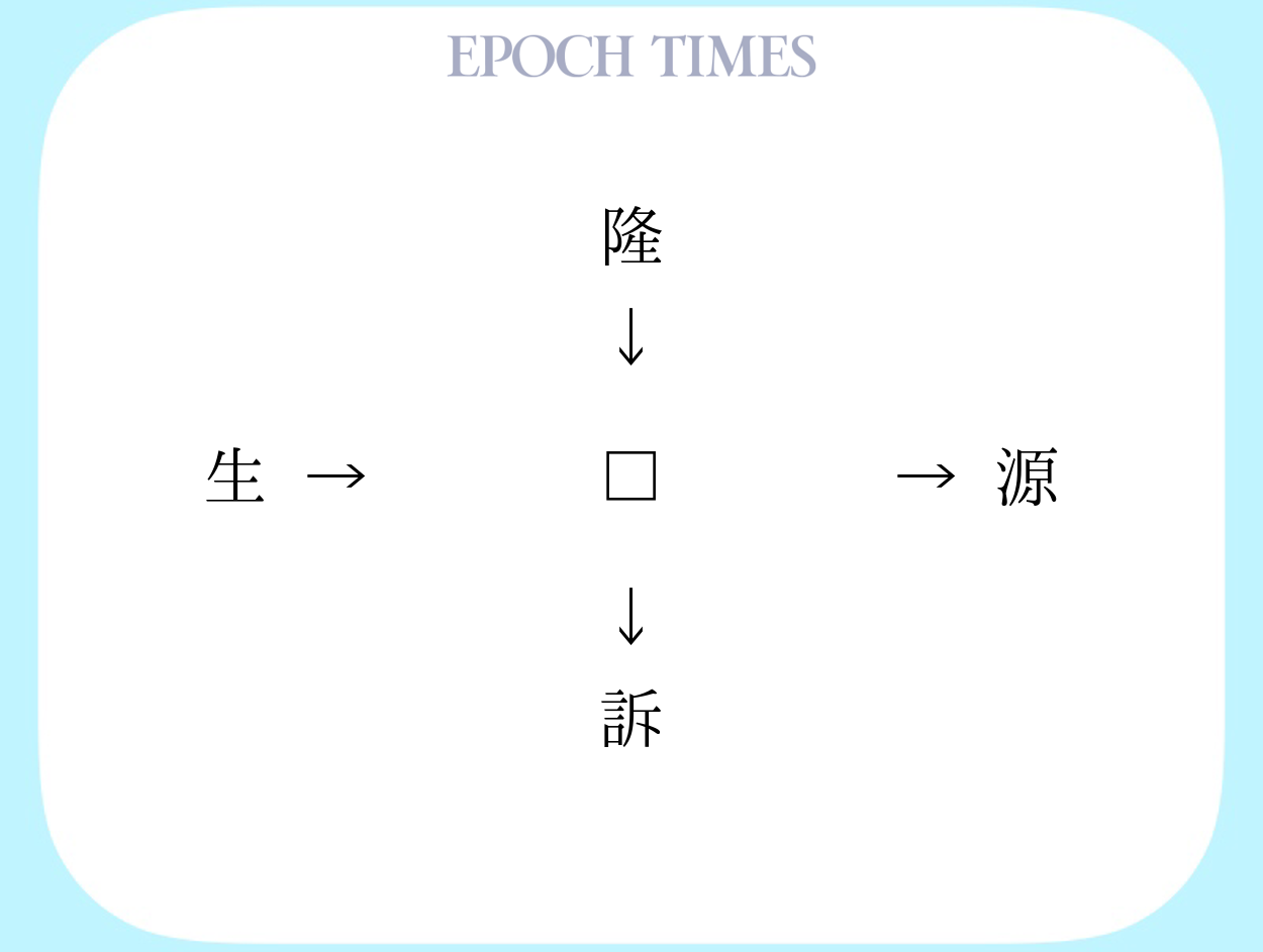 □に入る漢字を考えてください。 適当な漢字を入れることによって、「"隆□、□源、生□、□訴"」という4つの二字熟語ができます。 □に入る漢字は、熟語によって読み方が違ってもかまいません。