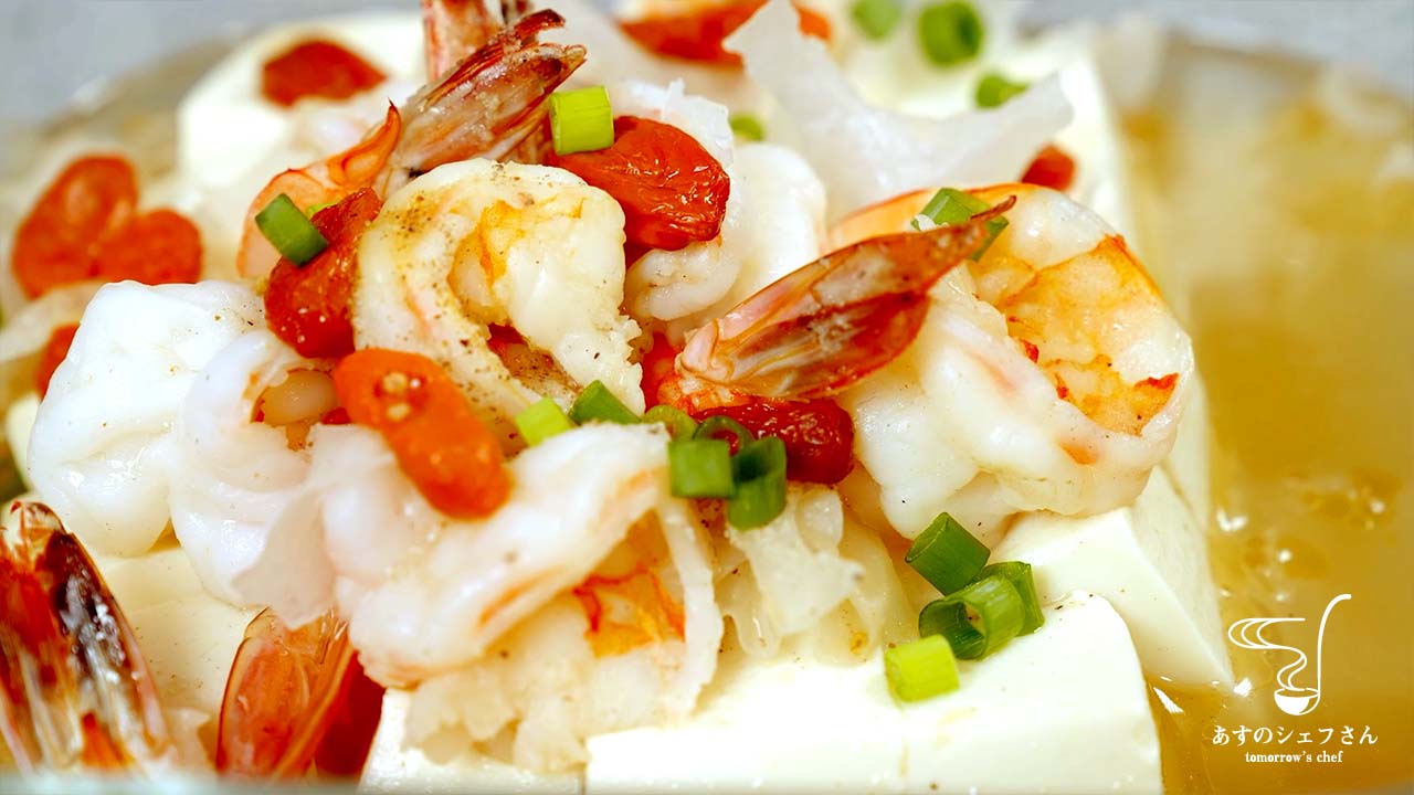 【美肌食材】白きくらげでお肌プルプル!エビと白キクラゲの蒸し豆腐