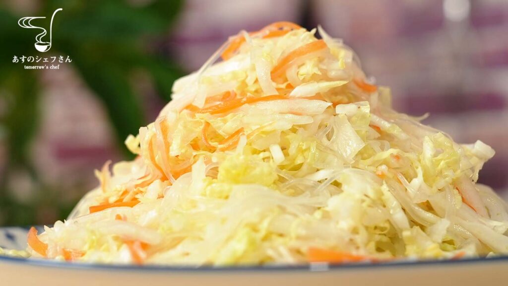中国大陸の東北地方では、白菜と春雨の中華和えがお酒のおつまみに欠かせないメニューです。白菜は肝臓に良く、二日酔いを和らげることができます。白菜本来のさっぱりした味を失わないよう、白酢を使います。白酢は比較的爽やかな酸味があり、他のお酢よりも和え物に最適なのです。