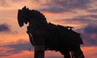 狡猾なギリシャの遠征軍は、トロイの浜辺からそう遠くない近くのテネドス島に停泊し、一日中近くの葦が茂る入り江に隠れていました。だからすぐトロイの浜辺に帰ってきたのです。
