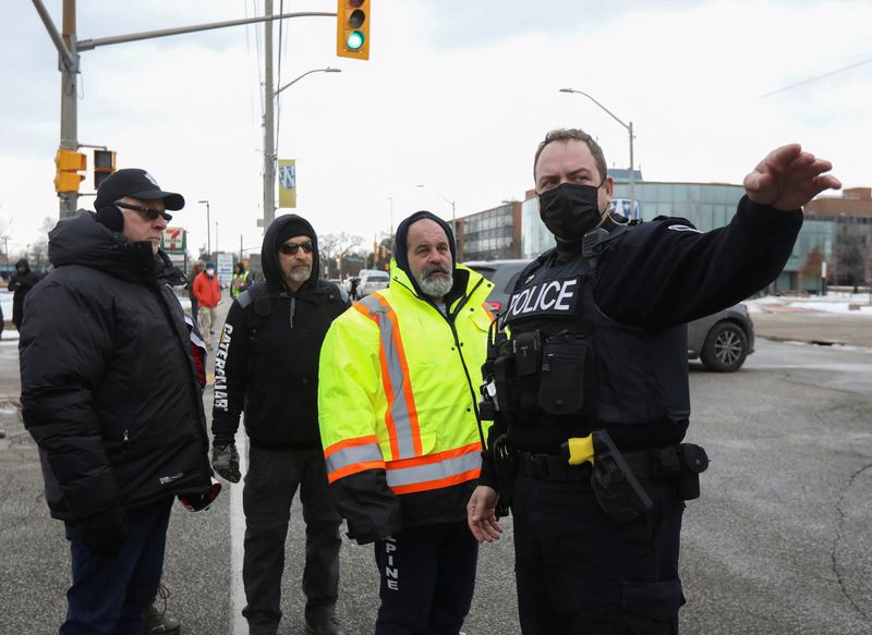 カナダの閣僚らは、道路の通行遮断は違法とし、デモ隊に解散を呼び掛けた。デトロイトと国境を接する加オンタリオ州ウィンザーの市長はCNNに対し、アンバサダー橋付近に警官が追加派遣されていると述べた。また「デモ参加者が解散しなければ、前に進む道が必要になる。それが物理的な排除を意味するのであれば、われわれにはその用意がある」と語った。