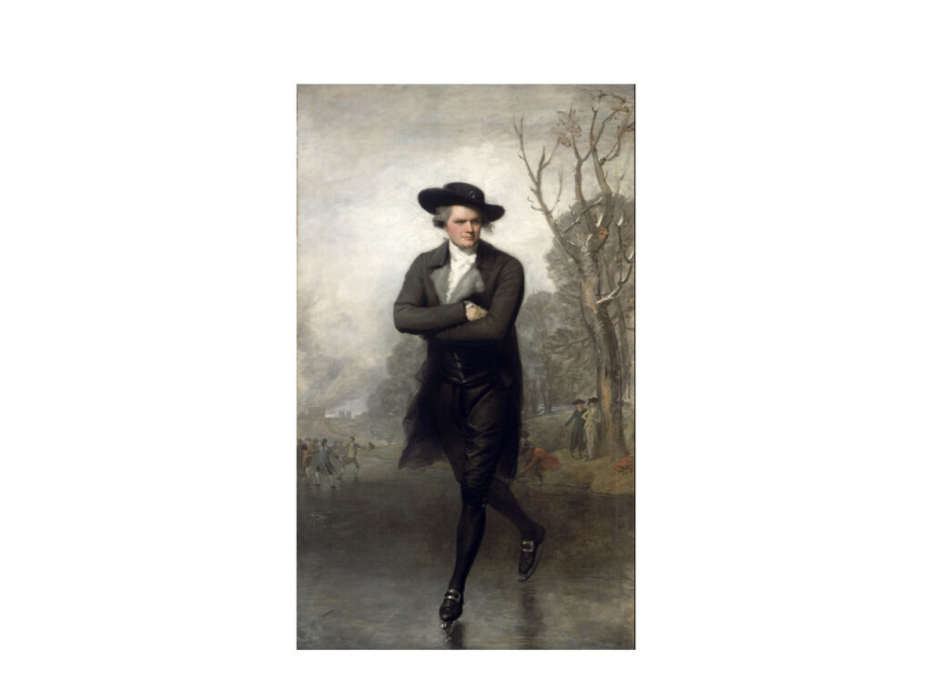 雪が降ったばかりのこの日、ウィリアム・グラントという若い男性がスチュアートのアトリエにやってきて、自身の肖像画の作成を依頼しました。しかし、この若い弁護士はずっと同じポーズを保っていることが苦手で、窓から外の雪景色を眺めながら、「こういう日はじっと座っているより、外でアイススケートをしているほうがずっと楽しいだろうな」とつぶやきました。