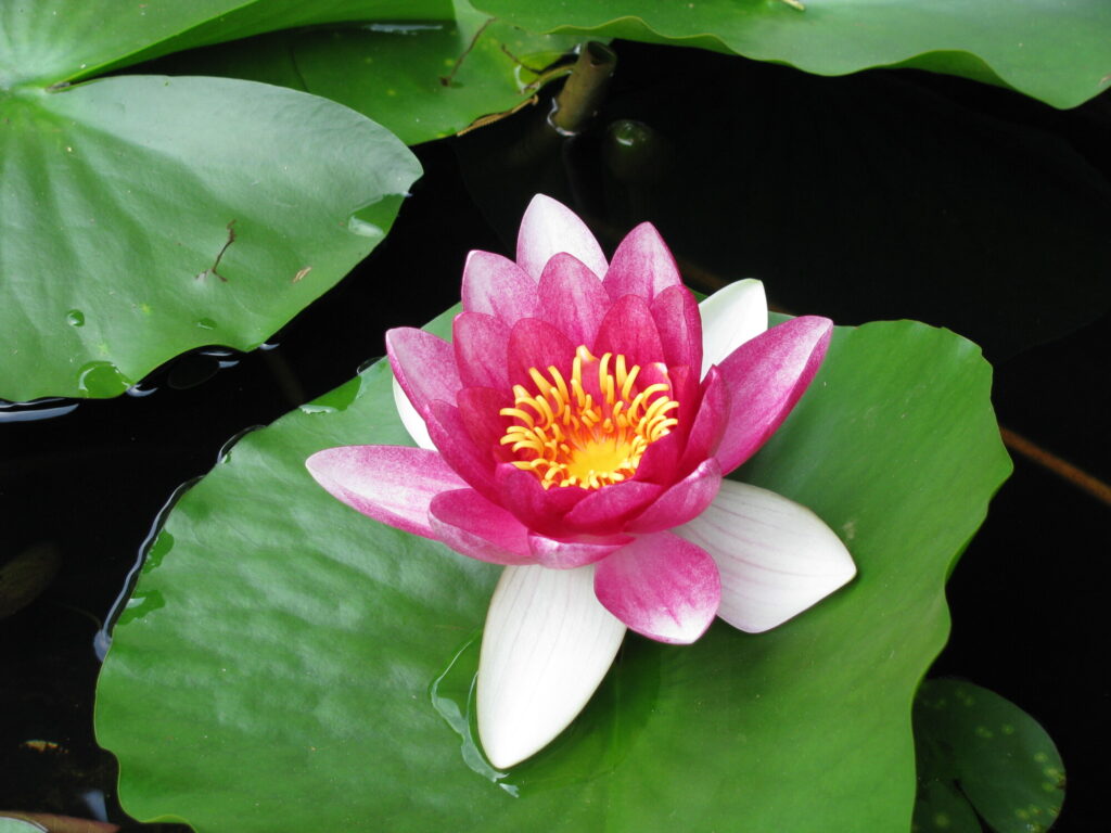 睡蓮の池が暗く感じたことから「ひと雨くるな」と見た。晩夏を飾る名句である。