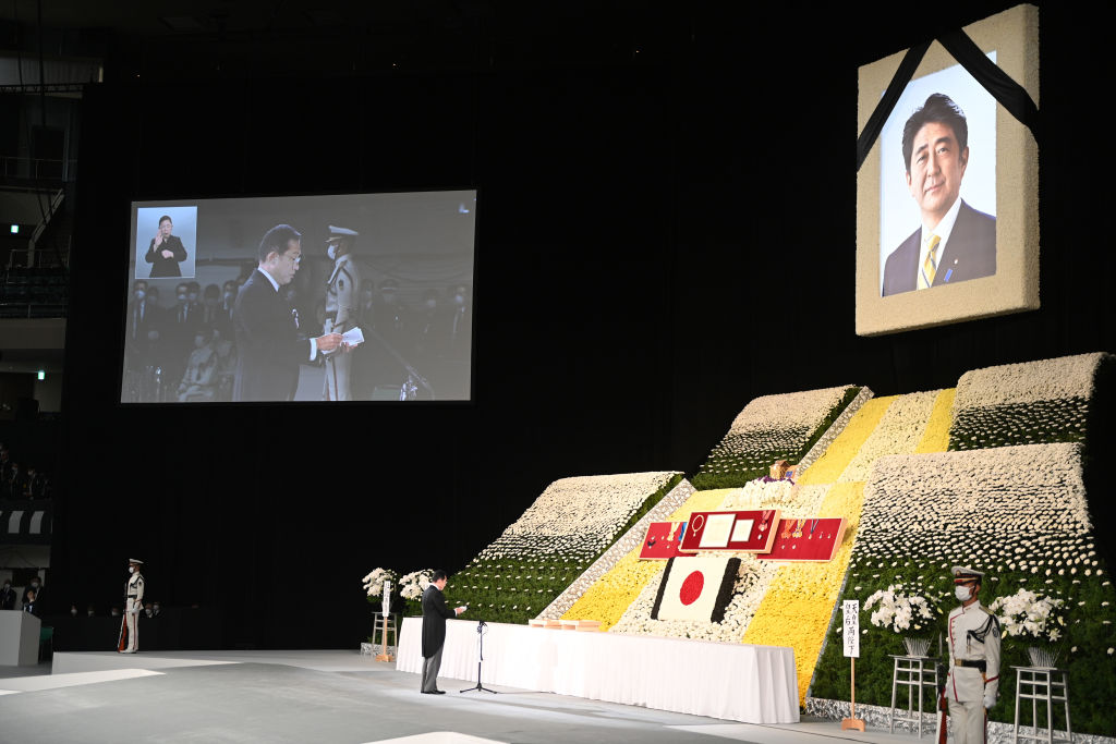 従一位、大勲位菊花章頸飾、安倍晋三・元内閣総理大臣の国葬儀が執り行われるに当たり、ここに政府を代表し、謹んで追悼のことばを捧げます。