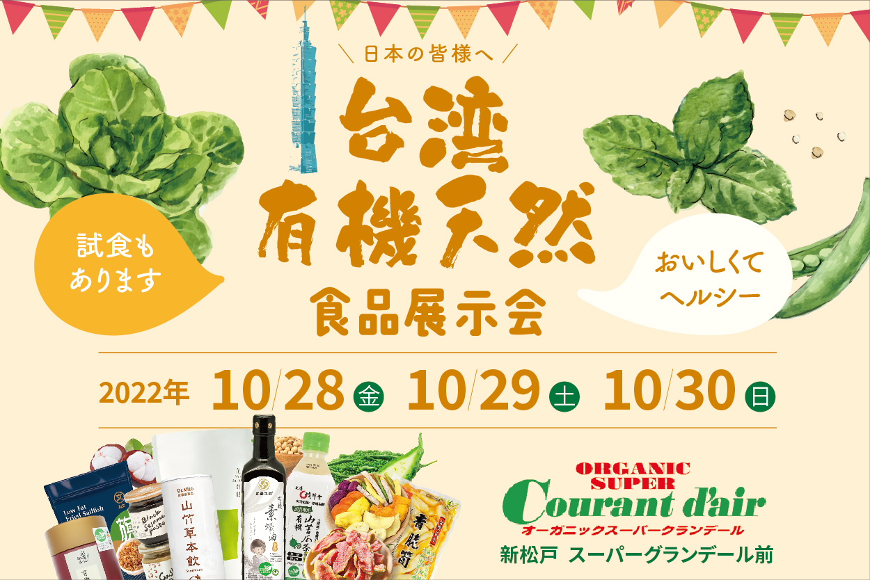 そうした100%台湾産の健康食品を紹介する催し「台湾有機天然食品展示会」が、10月28日より千葉県松戸市で開催されます。台湾直送の自然食品が展示された各ブースでは無料で試食や試飲ができますので、お気軽に出かけてみてはいかがでしょうか。