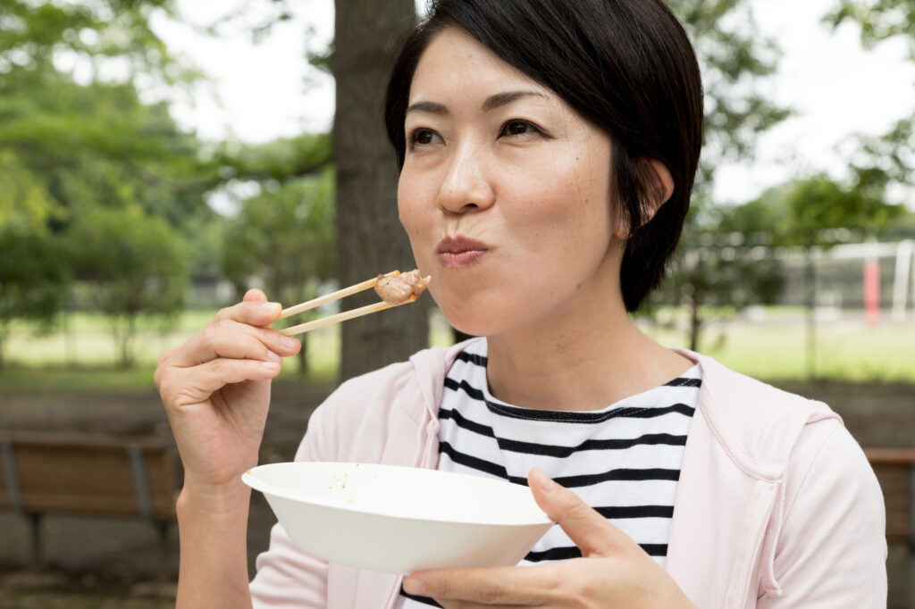 ●一口ごとに少なくとも10回、できれば15回噛んでから飲み込みましょう。