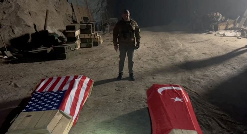 動画では、ワグネルの兵士が2つの木棺を釘で閉め、一方の棺に米国の星条旗、もう一方にトルコの国旗をかける様子が写っている。創設者エフゲニー・プリゴジン氏が棺のそばに立ち、2遺体を戦争捕虜とともに返還すると述べた。米国人の遺体は元米軍特殊部隊兵士のニコラス・マイマー氏のものだとしている。