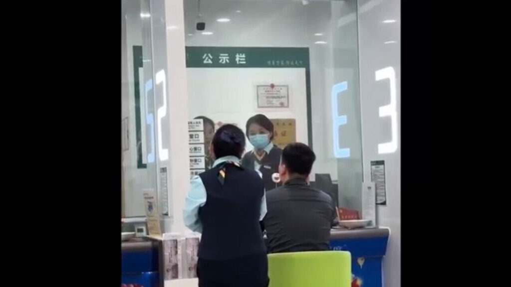 SNSに投稿された動画のなかには、中国版のゆうちょ銀行にあたる「中国郵政儲蓄銀行」の支店の窓口で、複数の銀行職員と言い争う男性の姿があった。