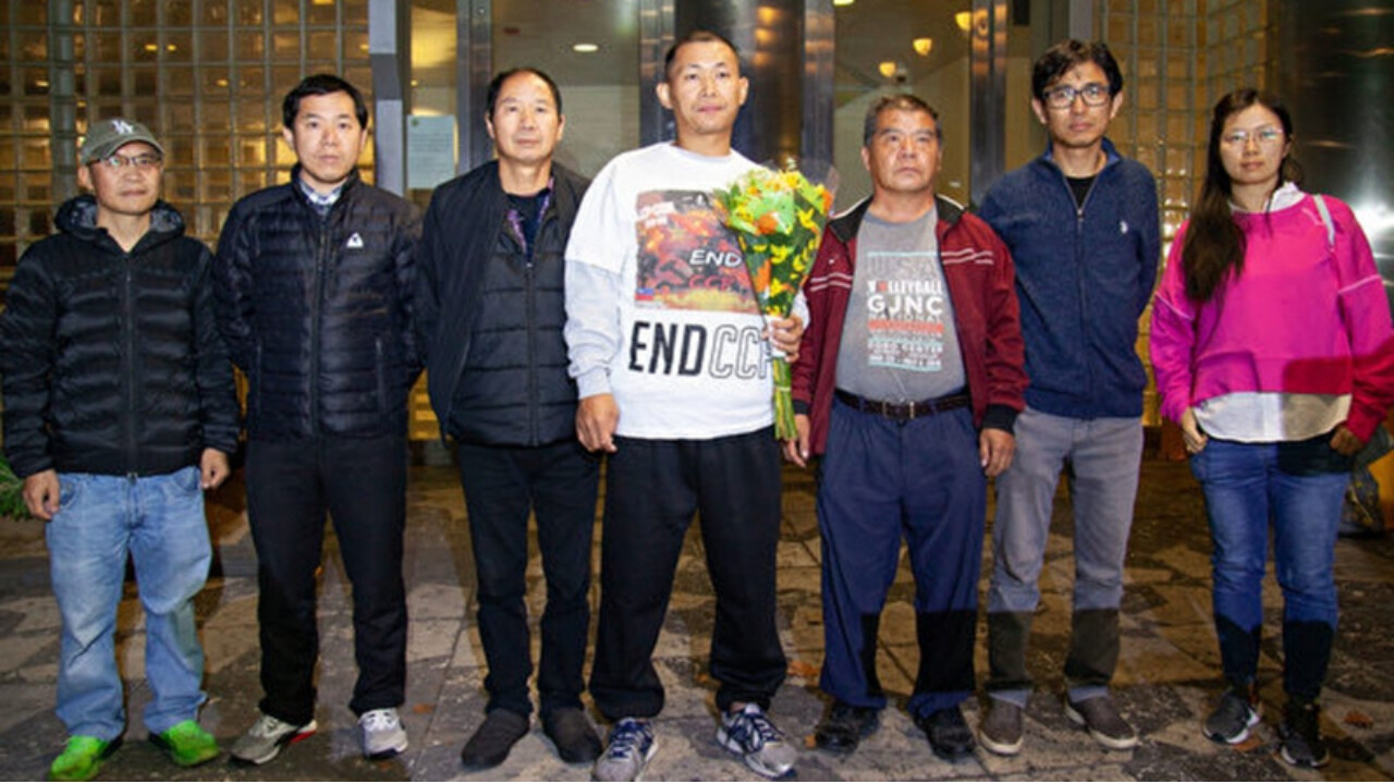 (保釈された界立建氏が、多くの支持に対し涙ながらに感謝するとともに、中共への不屈の闘志を述べた)