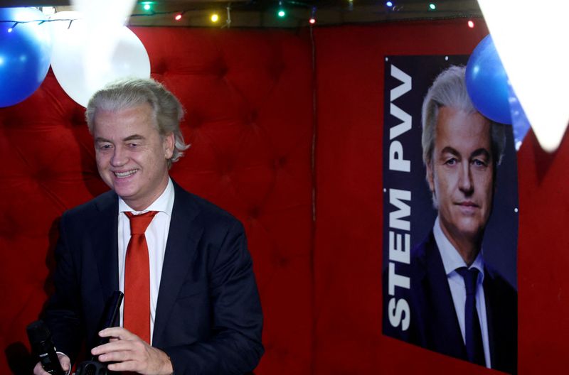 ウィルダース氏はVVDと新興政党「新社会契約(NSC)」との右派連立を目指すとみられている。3党の合計議席は79議席となる。ただ、VVDとNSCはウィルダース氏がモスクとコーランの禁止を目指すなど反イスラムの立場を取っていることから、同氏との連携に懸念を示しており、連立協議は難航する可能性がある。