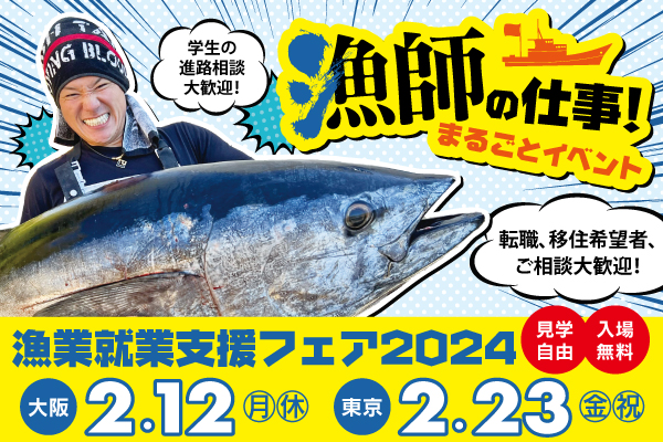 日本人の漁師の担い手確保・育成を目的に活動をしている、一般社団法人全国漁業就業者確保育成センター(以下「漁師.jp」)は、2月23日(金)東京で漁業就業支援フェアを開催します。