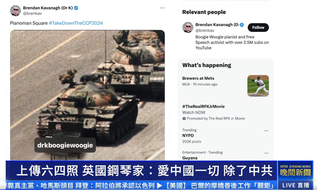 今年1月、英ロンドンにあるセント・パンクラス駅で起きた中国共産党を狂信する小粉紅(共産主義の影響を受けた若者)との「騒動」をきっかけに、見事な「反共産党戦士」に変身した英国人のピアニスト、ブレンダン・カバナー(Brendan Kavanagh)氏。