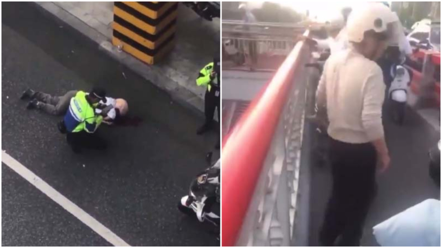 橋の上に押収されようとするバイクを置いたまま、橋から飛び降りて自殺した女性の遺体を映した動画が中国のSNSに投稿されている。血まみれになり地面に横たわる女性のそばには交通警察数人が取り囲んでいた。