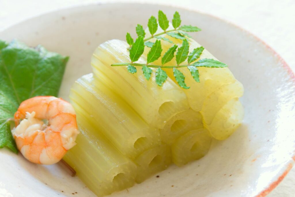 ふきを調理する際は、まずあく抜きを行います。約4cmの長さに切り、だし汁で煮て召し上がるのが一般的な食べ方です。味噌を加えてアレンジすることもおすすめです。