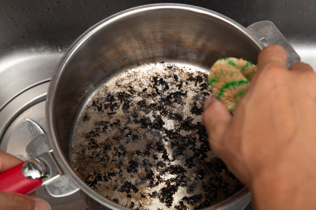 このような場合、一般的な洗剤で洗ってもなかなかきれいにならず、こすり過ぎると鍋を傷つけてしまうこともあります。実際、正しい配合と手順を使えば、焦げた鍋を簡単にきれいにすることができます。