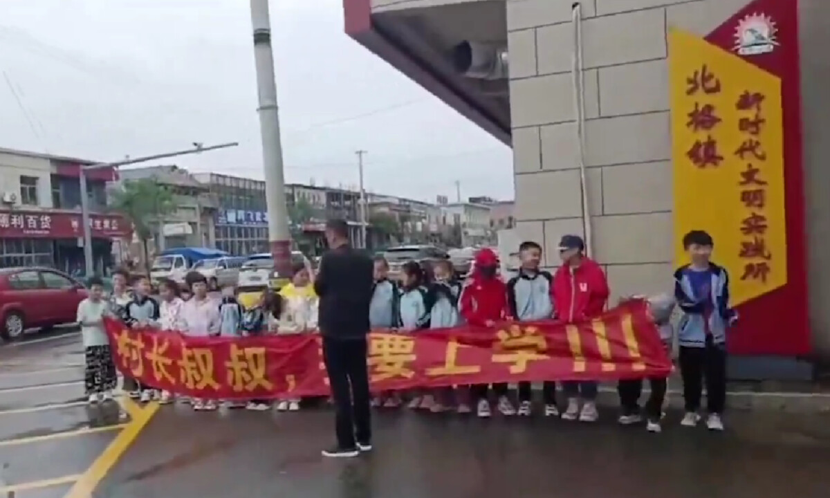 山西省太原市にある町「北格鎮」の政府前や政府ロビーで撮影された映像や画像のなかには、「村長のおじさん、私は学校に行きたい!!」と書かれた赤い横断幕を広げる制服姿の小学生たちの姿があった。