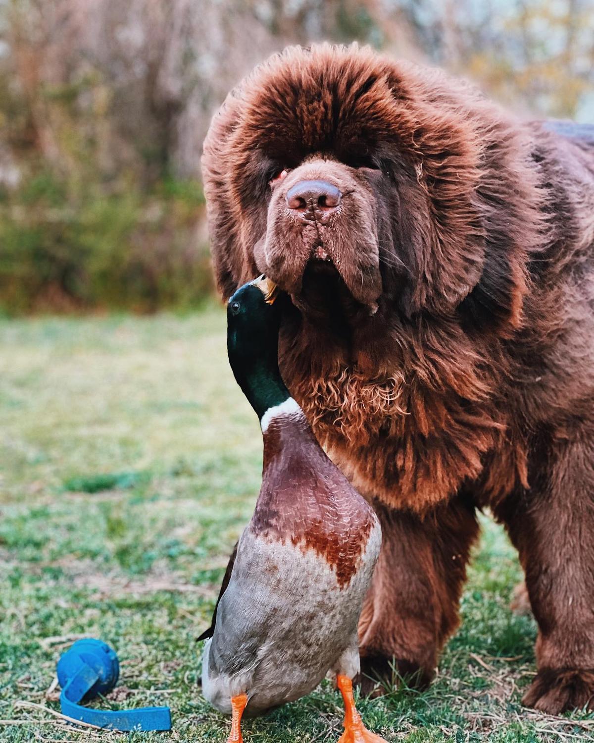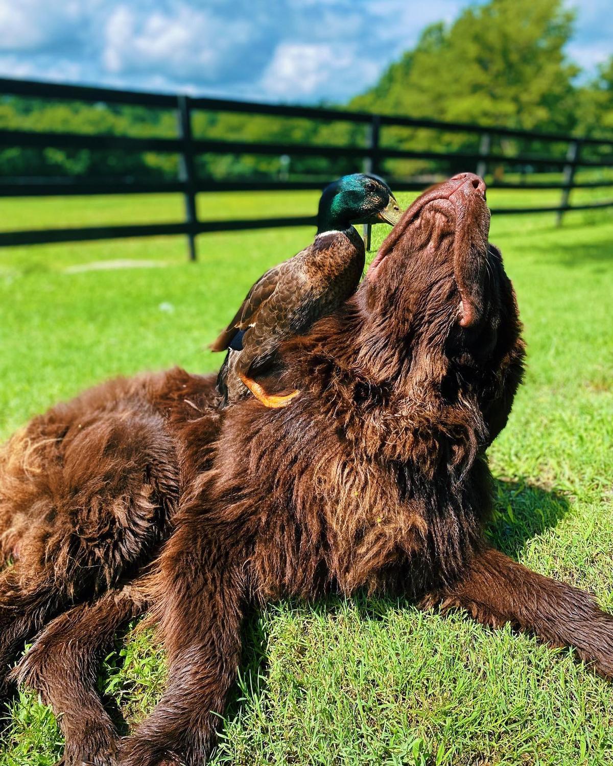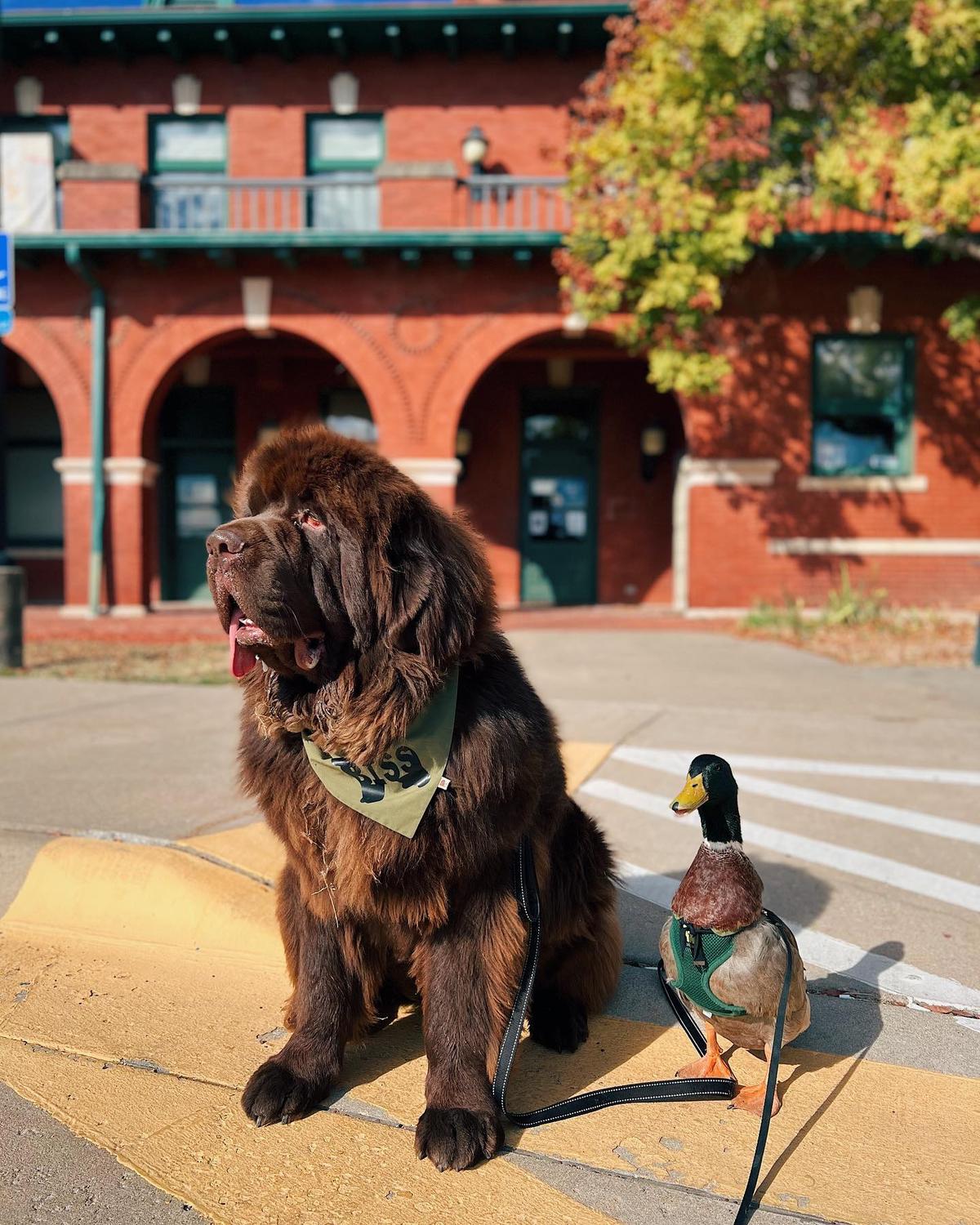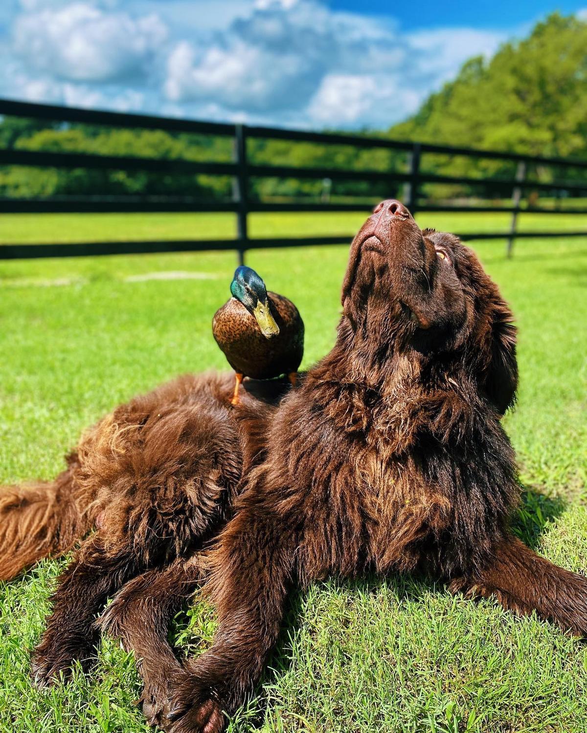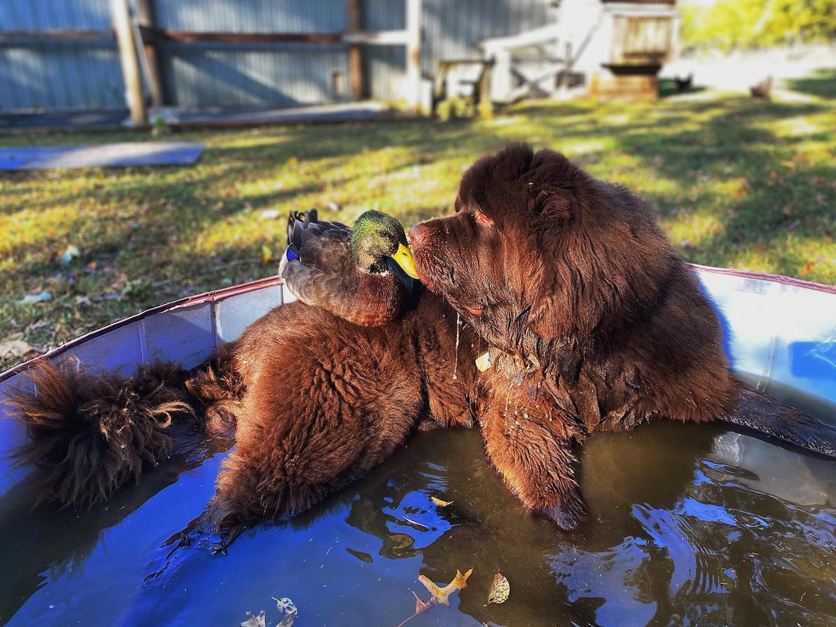 名前は「オラフ」というアヒルはすべての家族を失った後、「スヴェン」というニューファンドランド犬と素晴らしい友情を築きました。