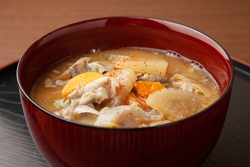 5.盛り付け 出来上がった豚汁を器に盛り付け、仕上げに長ねぎを散らして完成です。
