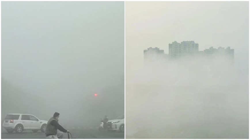 2日、中国気象局によれば、深刻な地域では視界が30メートルほどだ。「視界が10メートルだ」という現地(通州区)のネットユーザーもいる。