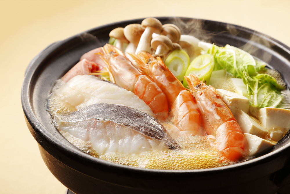 サーモン、ホタテ、むきエビを鍋に入れ、具材に火が通るまで煮ます。