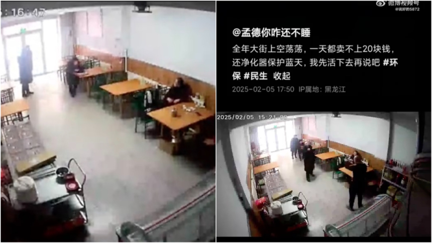 (黒竜江省佳木斯市の飲食店に「空気浄化」を求める「環境保護部門」。2025年2月5日)