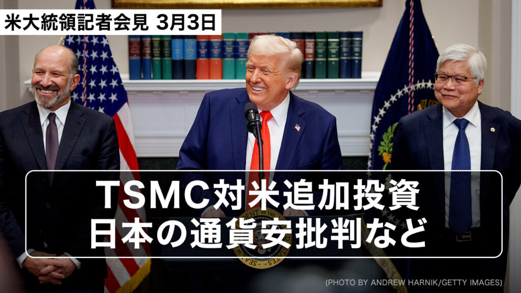 トランプ米大統領記者会見 3月3日「TSMC対米投資、ウクライナ問題、関税政策、日本や中国の通貨安政策など」
