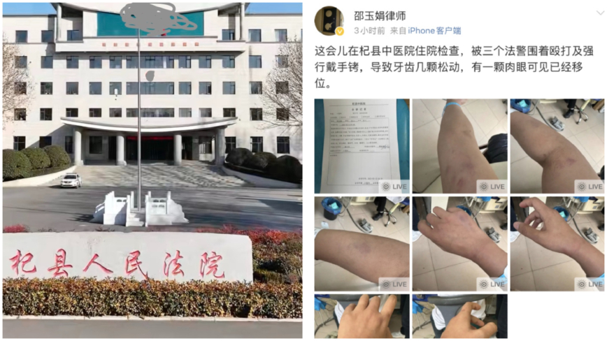 また、「邵弁護士は殴る、蹴るなどの暴行を受けて身体に多くアザができ、歯もぐらついた。顔は地面に押し付けられたことが原因で腫れている」という。