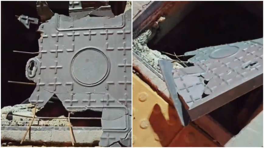 通行人が撮影した現場の動画に映るのは、蓋の異常な薄さとむき出しになった内部のあまりに細い鉄線だ。