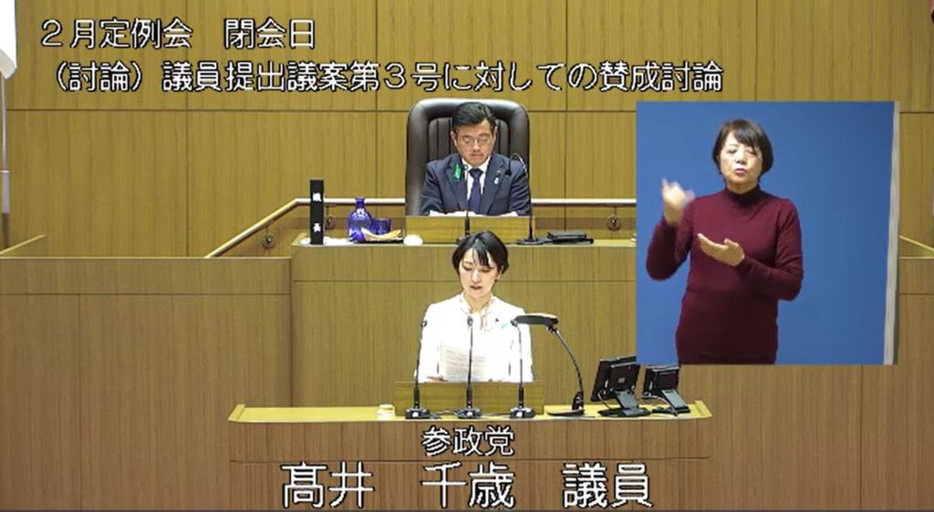 また、参政党の髙井千歳議員は賛成討論の中で、「そもそも今、多くの国民が選択的夫婦別姓制度を望んでいるのかは疑問が残るところだ。令和3年12月の内閣府による『選択的夫婦別姓制度を導入することについての意識調査』によると『夫婦同姓維持』が27%、『現在の制度である夫婦同姓制度を維持した上で、旧姓の通称使用についての法制度を設けた方がよい』が42%、合計69%の方が夫婦同姓を支持している。一方で『夫婦別姓導入』は約29%に留まっている」と紹介し、国民の多くが選択的夫婦別姓を望んでいるという言説に疑問を呈した。