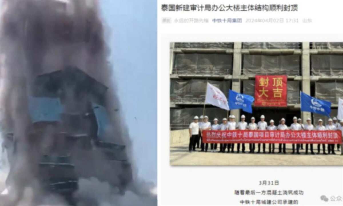 事件直後、「中鉄十局」はその「誇らしげな宣伝記事」を速やかに削除。中国国内メディアも「バンコクで建設中の高層ビルが倒壊」とだけ報道して、施工業者に関する部分は沈黙を貫き通している。