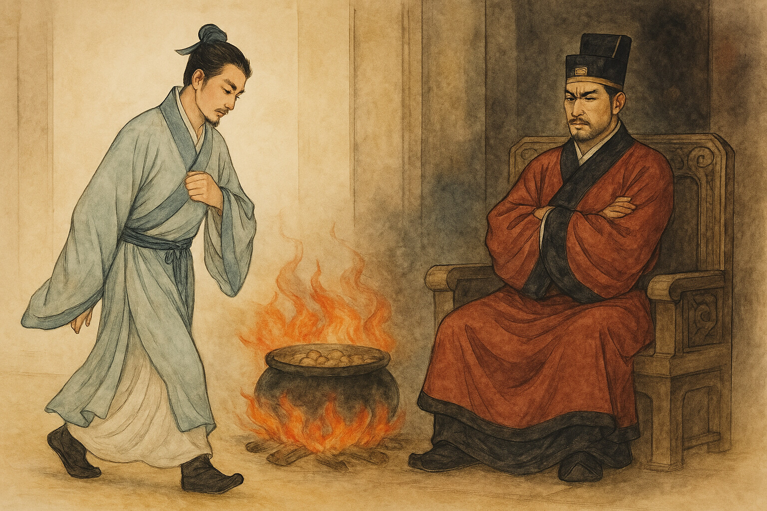 豆殻は鍋の下で燃やされ、その火で豆が鍋の中で煮られている。鍋の中の豆は苦しみながら泣き叫ぶ。「私たちはもともと同じ根から生まれたのに、なぜこんなにも激しく煎って、容赦なく責めるのか?