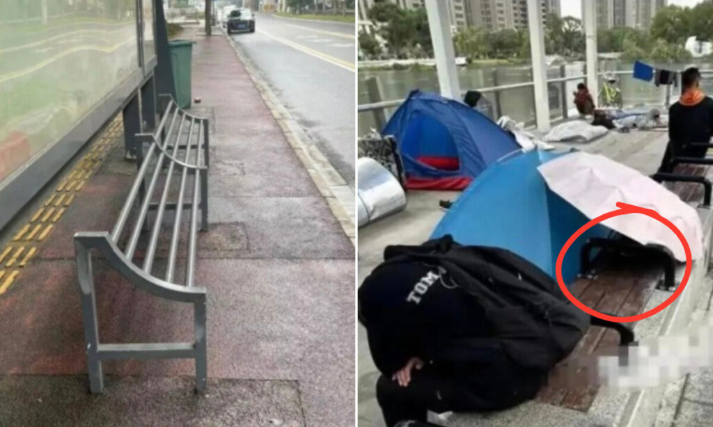 例えば、湖南省の省都・長沙市の空港近くのバス停ベンチは、「(尻の半分しか乗らないため)座ると尻が痛い設計」と批判が殺到している。そのように設計された理由は、「市民がベンチに横たわることを防止するため」と当局者は説明する。また江蘇省昆山市の、とある公園の「鉄パイプ付きのベンチ」も有名だ。理由は同じく、ホームレス対策、夜間の滞在防止であった。